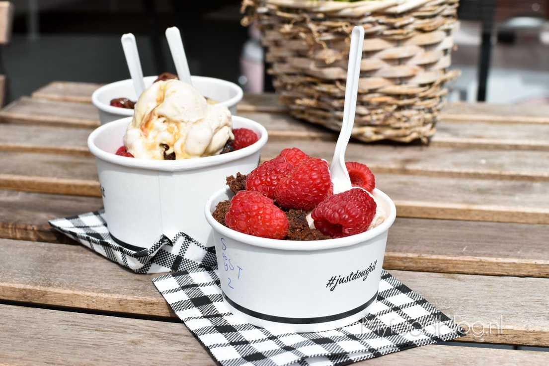 We waren met z’n drieën en gingen alledrie voor een andere smaak deeg. Ik had als basis ‘original’, wat een zandkoekjesdeeg is. Als topping ging ik voor brownie, framboos en dus een bol ijs. Een medium echter was voor ons allemaal veel te groot. Het is door het machtige, boterige deeg iets waarvan je niet heel veel op kunt. Knap dus als je een large of zelfs een XXL op kunt! Het is leuk dat je je deeg en de toppings kunt kiezen en dat ook nog eens af kunt maken met een bol ijs. Ik vond het lekker, maar dus wel heel machtig. Zeker niet iets wat ik elke week hoef te eten, maar wel een lekkere traktatie voor eens in de zoveel tijd.