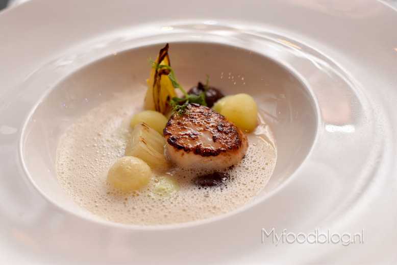 Niet alleen de chef en het uiterst vriendelijke en correcte bedienende personeel (de zwarte brigade) hebben hun best gedaan, ook voor de vinoloog complimenten. Alle wijnen die we geserveerd krijgen, complementeren de gerechten. Leuk is dat we bijvoorbeeld een hele lokale Nederlandse wijn krijgen en niet alleen voor de noviteit. Het gaat ook daadwerkelijk goed samen met de vis die we eten.