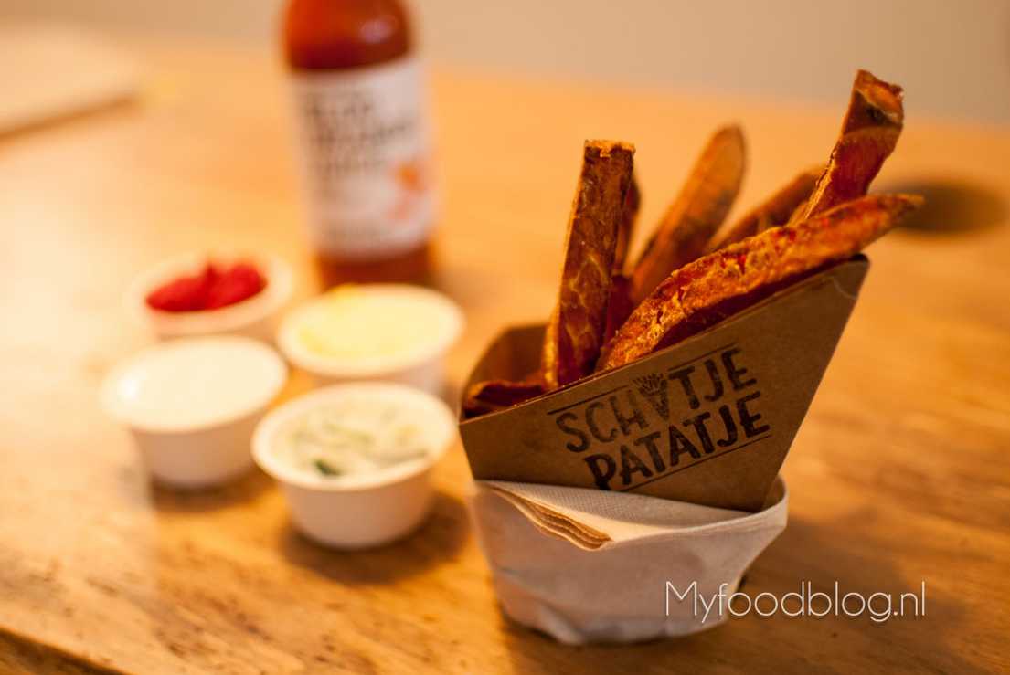 De frites blijven frites dus echt gezond zou ik ze niet willen noemen, maar ze zijn wel gezonder dan de meeste andere snackbar opties en bovendien gewoon heel erg lekker. Zoete aardappels die grof gesneden zijn, met een dun laagje coating in een zo gezond mogelijke frituurolie. De zoete aardappels komen uit Spanje, want biologisch vonden de eigenaren belangrijk én er is nogal wat geëxperimenteerd met de perfecte aardappel en het perfecte recept.
