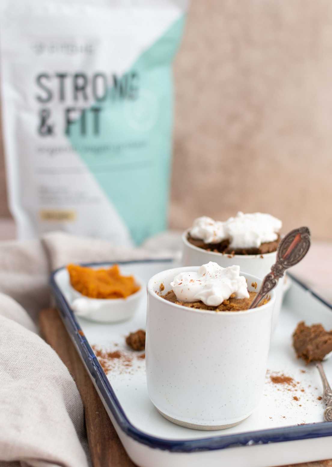 Gezonde pumpkin spice mug cake (eiwitrijk ontbijt)
