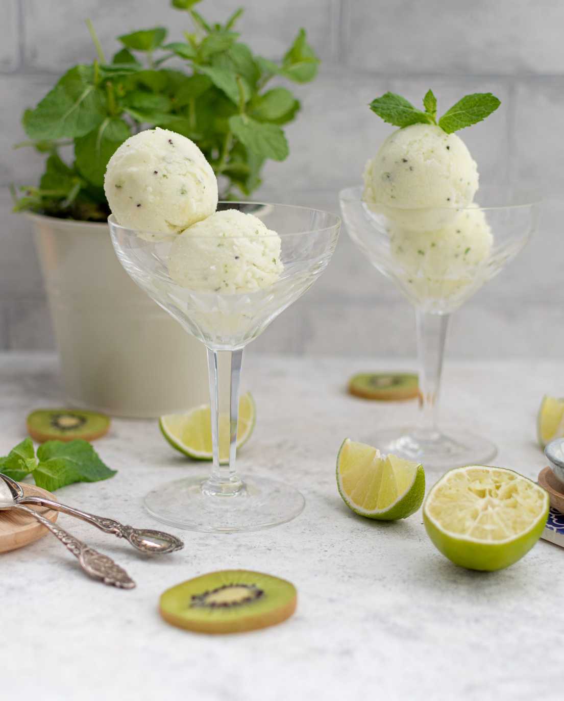 Op zoek naar een heerlijk sorbetijs recept? Ik denk dat ik kan zeggen dat DIT recept het allerlekkerste sorbetijsje is wat ik ooit heb gegeten. De kiwi en ananas gaan perfect samen met de munt en de limoen. Fris ijs, zoet genoeg en lekker verfrissend.