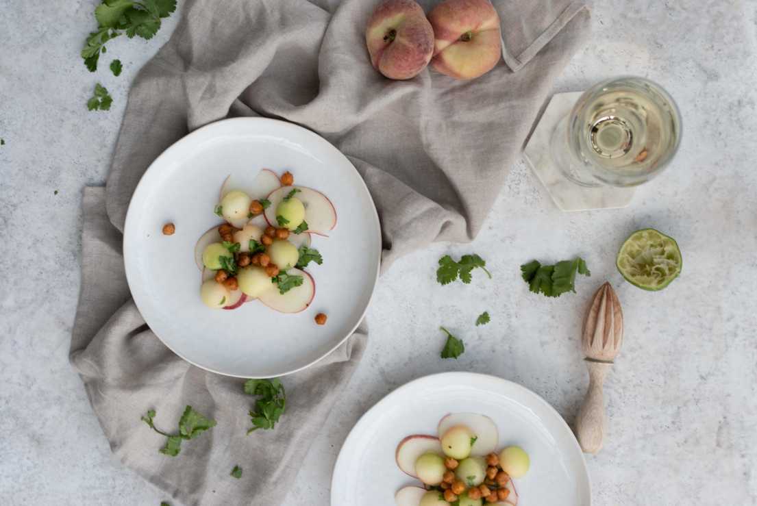 Maar wil je een vegetarische versie, omdat je bijvoorbeeld geen vlees eet of zwanger bent? Dan is dit een heerlijk alternatief! De meloen wordt hierbij gemarineerd in citrussap. Op smaak gebracht met zout en koriander wordt het een smaakexplosie! Als kers op de taart de krokante kikkererwten die zorgen voor wat crunch.