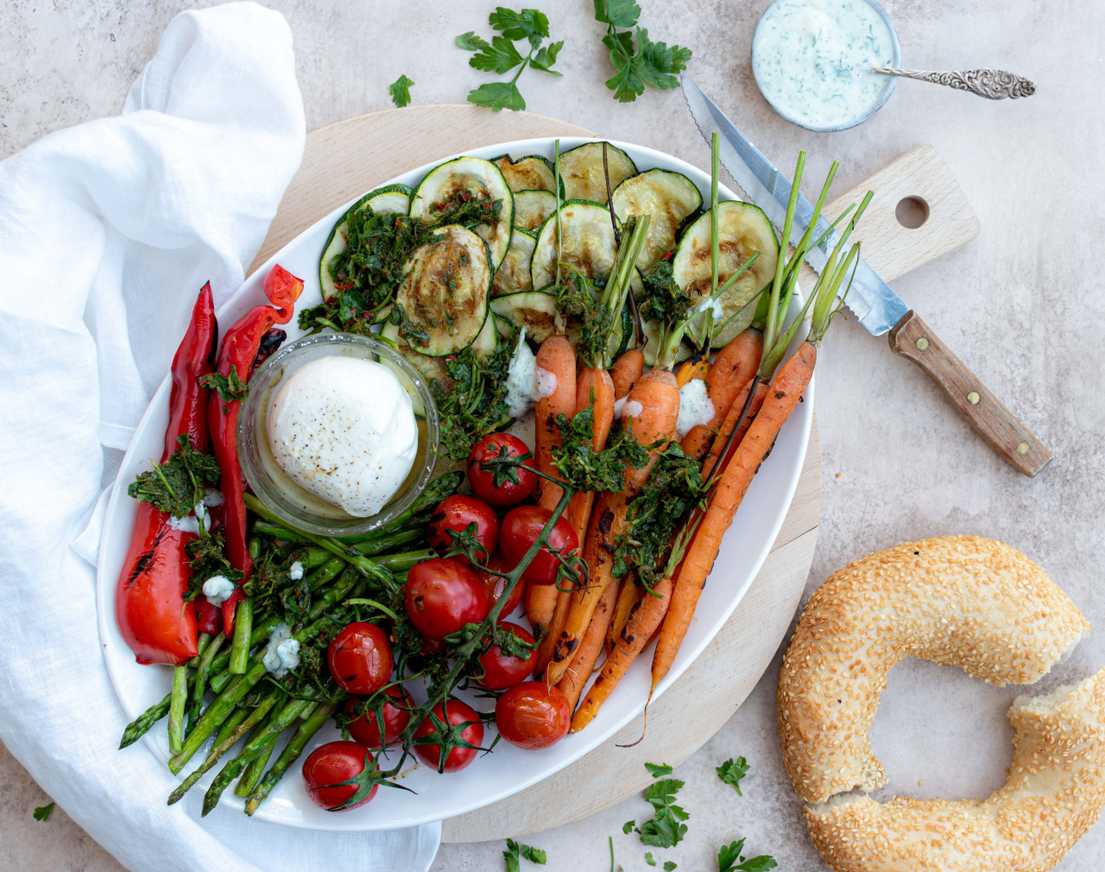 Erbij serveer je bijvoorbeeld rustiek brood of gebakken (zoete) aardappel. Een heerlijke groenteschotel ook om samen van te eten. Uiteraard kun je ook variëren met de groenten. Is er een groentesoort waar je meer of minder van houdt? Dan kun je die toevoegen of juist weglaten. Aubergine en courgette doen het bijvoorbeeld goed samen, dus voeg aubergine toe als je dat lekker vindt of laat de asperges weg als je die niet kunt vinden. Ga je deze heerlijke gegrilde groenten zelf maken? Laat weten in de comments of op Instagram wat je ervan vond!