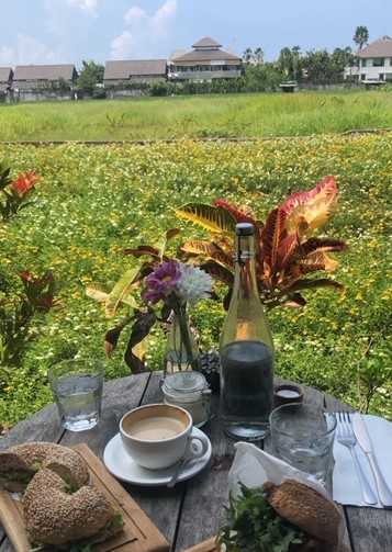 Ondanks dat er super veel leuke eetplekjes zijn op Bali, had ik na al die weken uitproberen toch echt één favoriet, namelijk het Cinta Café. Dit is een plekje waar je heerlijk kan ontbijten en lunchen voor maar ongeveer 4 á 5 euro. Ik ging hier minstens één keer per week naartoe om even tot rust te komen. Het eten is hier niet alleen lekker en gezond, maar je hebt ook nog eens een geweldig uitzicht. Mijn vaste tafeltje staat namelijk op het uitzicht van een rijstveld, zó mooi. De eigenaar van deze tent is een Nederlandse man, maar het leuke eraan is dat hij alleen maar Balinees personeel in dienst heeft. Dit gaf mij echt het gevoel dat ik in een andere cultuur was. Daarnaast zijn de lokale mensen op Bali super gastvrij, behulpzaam en beleefd en zo dus ook in het Cinta Café. Mijn favoriete ontbijt bij dit café is ‘The salmon bagel’: een sesambagel met roomkaas, avocado, zalm en rucola. Ook hebben ze hier heerlijke koffie!