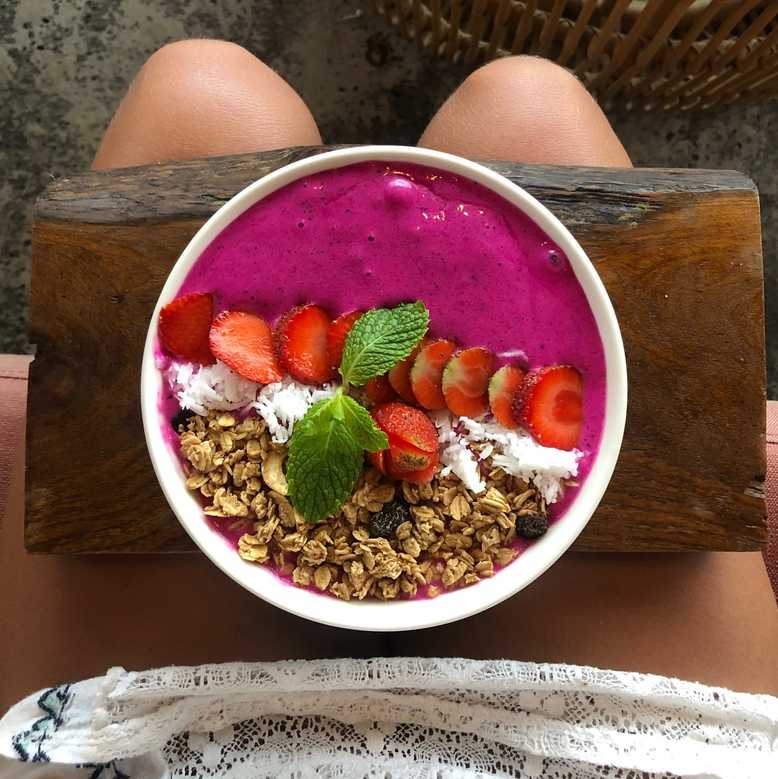 Je bent niet echt op Bali geweest, als je geen smoothiebowl gegeten hebt, dit was dan ook mijn favoriete ontbijt. Het is niet alleen heel lekker maar het zit ook boordevol vitamines. Een smoothiebowl is gemaakt van heerlijke tropische fruitsoorten, met daaroverheen een topping van bijvoorbeeld verse granola, zaden en kokossnippers. Natuurlijk zijn er heel veel varianten, maar ikzelf vind een smoothiebowl gemaakt van bijvoorbeeld mango, passievrucht of dragonfruit het lekkerst. Omdat het klimaat op Bali zo gunstig voor deze soorten fruit om te groeien, zijn ze extra lekker en zoet. Zo lekker vind je ze niet in de supermarkt in Nederland.