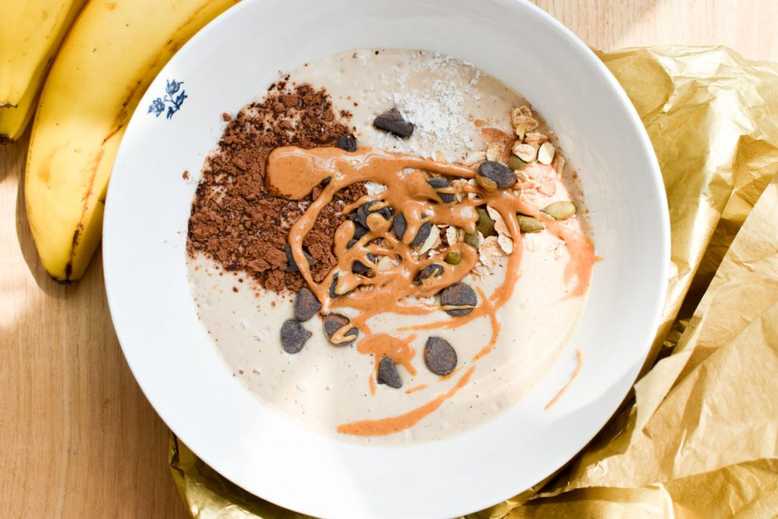 Pindakaas smoothiebowl (een gezond en eiwitrijk ontbijt!)
