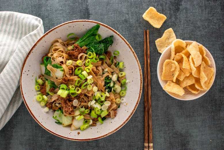 Regenboog noodle salade met Indonesisch gemarineerde eieren
