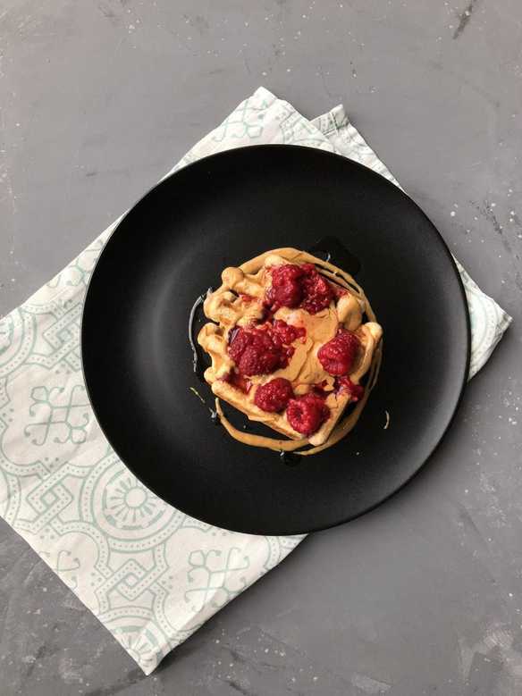 Pindakaas wafels met frambozen