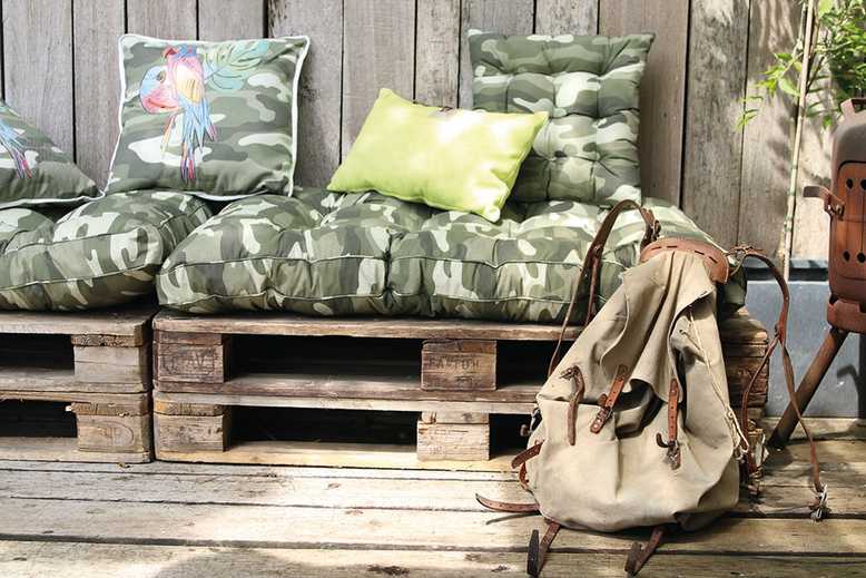- Zitplekken creëren. Wij wilden hierin flexibel zijn en kochten dus 4 kuipstoeltjes en een mooie teak bank. Het voordeel hiervan vind ik, dat je op een bank vaak nog wel kunt inschikken en door de materialen af te wisselen heeft het een heel ruimtelijk gevoel. We hebben lekker veel kussens in de rug en gaan nog een lang bankkussen kopen voor op het zitvlak. Daarnaast kunnen we voor extra gasten snel extra stoelen bijzetten. Een ander leuk idee om zitplaatsen te maken is bijvoorbeeld het neerzetten van een paar pallets. Hoe leuk zien een paar houten pallets met wat kussens erop er bijvoorbeeld uit? Ik kan je vertellen: heel leuk. Kijk maar mee naar deze toffe plaatjes.