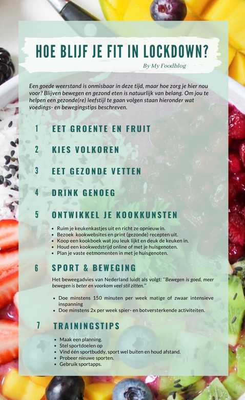 Een goede weerstand is onmisbaar in deze tijd, maar hoe zorg je hier nou voor? Blijven bewegen en gezond eten is natuurlijk van belang. Nu al de feestjes en borrels afgelast zijn, is dit het perfecte moment om fit te blijven of te worden. Om jou te helpen een gezonde(re) leefstijl te gaan volgen, staan hieronder wat voedings- en bewegingstips en feiten.