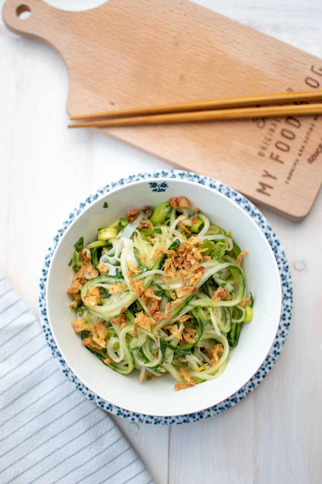 Heb je zin in noodles in je salade? Dan is deze Vietnamese noodle salade vast iets voor je. Behalve noodles vind je er heerlijke smaakmakers in zoals koriander, munt en limoen. Bovendien zorgen wortel, taugé, komkommer en bosui voor extra kleur en vitamines!